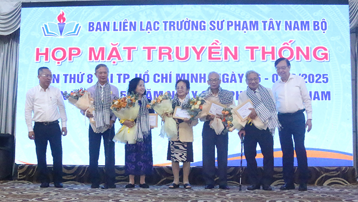 Tham dự họp mặt có NGND.TS Đặng Huỳnh Mai – nguyên Thứ trưởng Bộ GD-ĐT; ông Nguyễn Mạnh Cường – Trưởng ban Tuyên giáo và Dân vận Thành ủy TP.HCM; TS. Hồ Thiệu Hùng – nguyên Giám đốc Sở GD-ĐT TP.HCM; ông Nguyễn Văn Hiếu – Giám đốc Sở GD-ĐT TP.HCM cùng nhiều cựu giáo viên, cựu học viên Trường Sư phạm Tây Nam bộ, giáo viên, sinh viên tại TP.HCM.