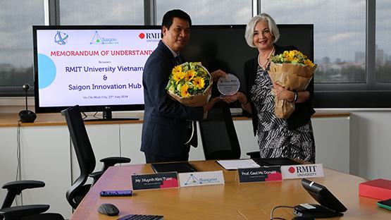 Giáo sư Gael McDonald, Hiệu trưởng RMIT Việt Nam, cũng hết sức vui mừng với việc hợp tác chính thức này và cho biết: “Chúng tôi thấy nhiều cơ hội mà chúng tôi có thể hỗ trợ cũng như học hỏi từ SIHUB”. Giáo sư Gael McDonald, còn trao đổi về sơ đồ hành trình khởi nghiệp cho sinh viên RMIT Việt Nam cũng như không gian kích hoạt khởi nghiệp Activator, nơi sinh viên có thể nuôi dưỡng tinh thần khởi nghiệp và những hoạt động sơ khởi, vừa đi vào hoạt động gần đây.