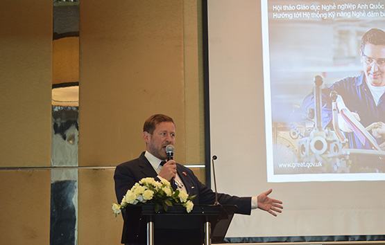 Phát biểu khai mạc hội thảo, ông Ed Vaizey – Đặc phái viên thương mại của Thủ tướng Anh – nhấn mạnh: “Tôi rất vui mừng được giới thiệu các lĩnh vực hợp tác giữa Anh quốc và VN trong việc cải thiện chất lượng GDNN cũng như các quy định, chính sách và thực tế mà VN có thể áp dụng. Với dân số trẻ và môi trường kinh doanh năng động, VN là một quốc gia có nhiều tiềm năng để xây dựng quan hệ đối tác với Vương quốc Anh. Tôi tin rằng các mối quan hệ hợp tác này sẽ giúp trang bị cho các SV nghề, công nhân và các doanh nghiệp những kiến thức và kỹ năng của thế kỷ 21 để họ thành công trong thị trường lao động toàn cầu”.