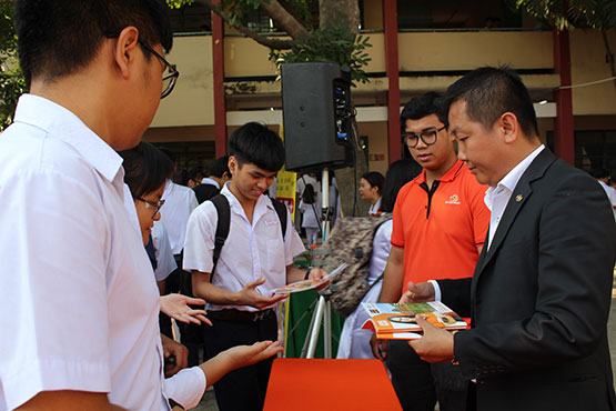 Học sinh Trường THPT Phước Long (Q.9, TP.HCM) trao đổi với chuyên gia hướng nghiệp trong chương trình “Cùng bạn chọn nghề cho tương lai” do Báo Giáo dục TP.HCM tổ chức trong năm học vừa qua