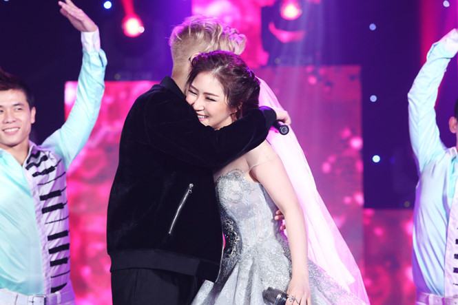 Bùi Anh Tuấn ôm hôn tình cũ trong một đêm nhạc. Ảnh: TL