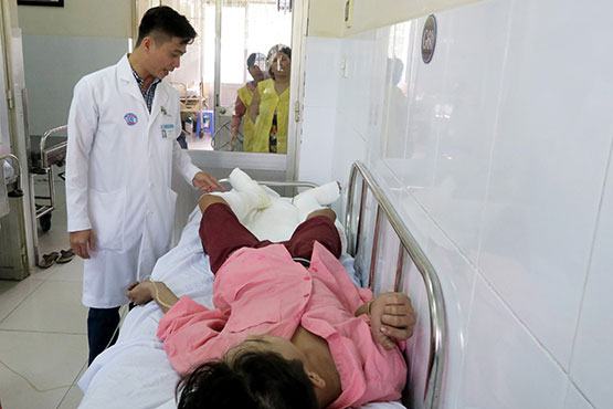 Tại Khoa Phỏng – Phẫu thuật tạo hình, các BS nhận định, 3 bệnh nhân là anh T., chị Th. và em Kh. bị bỏng nặng toàn thân, từ 97-100% độ 2, độ 3. Cả 3 bệnh nhân đều bị bỏng hô hấp, sốc bỏng nghiêm trọng, đang trong tình trạng nguy kịch, tiên lượng dè dặt. Riêng bệnh nhân K. chỉ bị bỏng 2 chân, tình hình đã ổn định.
