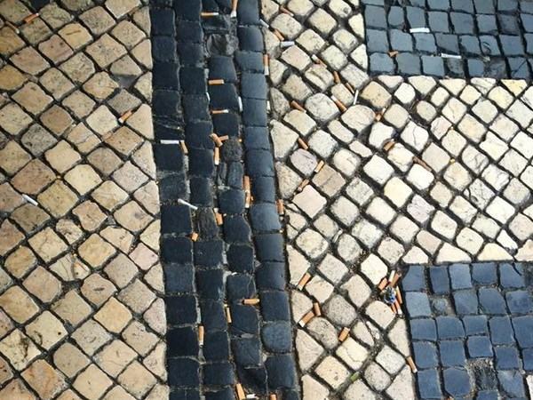 Hình ảnh các đầu mẩu thuốc lá vứt bừa trên đường phố (Ảnh: CTV)