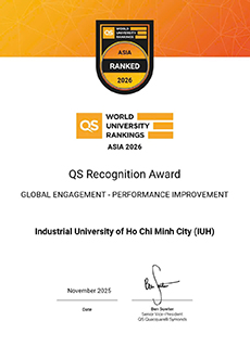 Đại học Công nghiệp TP.Hồ Chí Minh (IUH) vinh dự nhận Giải thưởng quốc tế “Global Engagement – Performance Improvement” (Hội nhập toàn cầu – Cải tiến hiệu quả) do QS Quacquarelli Symonds trao tặng. Cũng trong dịp này, QS World University Rankings: Asia 2026 công bố IUH tiếp tục được thăng hạng với vị trí 355 trong bảng xếp hạng giáo dục đại học khu vực châu Á và 73 tại khu vực Đông Nam Á.