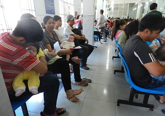 Phụ huynh đưa con (dưới 72 tháng tuổi) đi khám bệnh. Ảnh: H.Triều