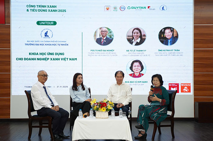 Ngày 21-11, Uni Tour “Công trình xanh – Tiêu dùng xanh”, do Hiệp hội Doanh nghiệp hàng Việt Nam chất lượng cao phối hợp Trường Đại học Khoa học Tự nhiên (ĐHQG TPHCM) tổ chức đã mở ra không gian kết nối giữa doanh nghiệp và nhà trường trong nỗ lực thúc đẩy sản xuất xanh, phát triển bền vững.