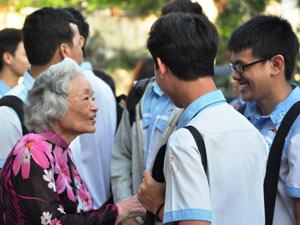 Nhà giáo Đàm Lê Đức đến động viên các HS tại kỳ thi tốt nghiệp THPT vừa qua