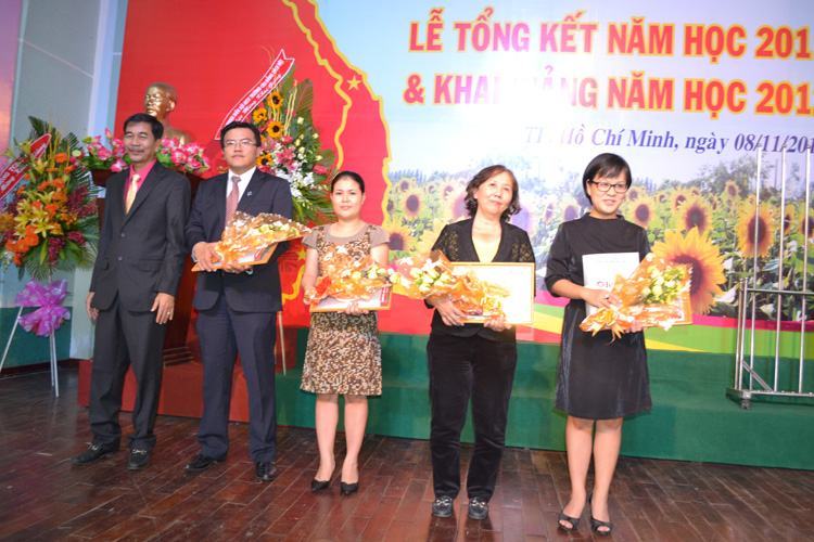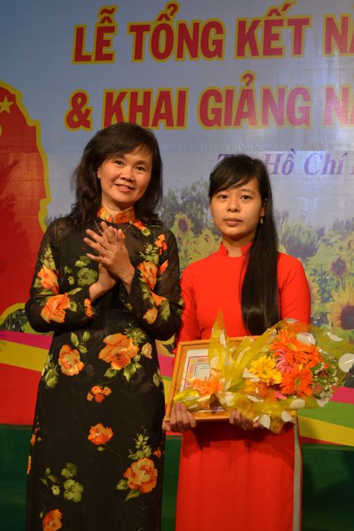 ThS. Châu Thủy Tiên – Phó chủ tịch Hội đồng quản trị, Phó hiệu trưởng nhà trường trao học bổng (trị giá 100% học phí học kỳ 1) và phần thưởng 1.000.0000 đ cho Thủ khoa kỳ thi tuyển sinh Cao đẳng 2012 – Bạn Bùi Thị Tươi