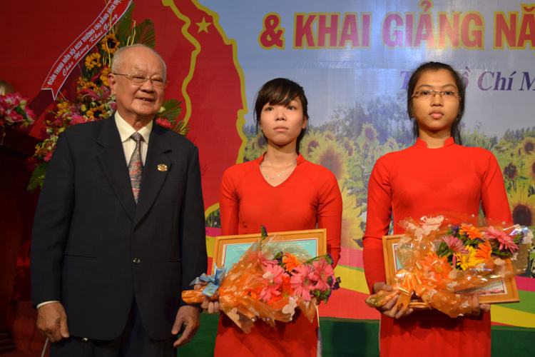 Bác Châu Ngọc Thanh – Cố vấn Hội đồng quản trị trao học bổng cho sinh viên xếp loại xuất sắc trong học tập và rèn luyện
