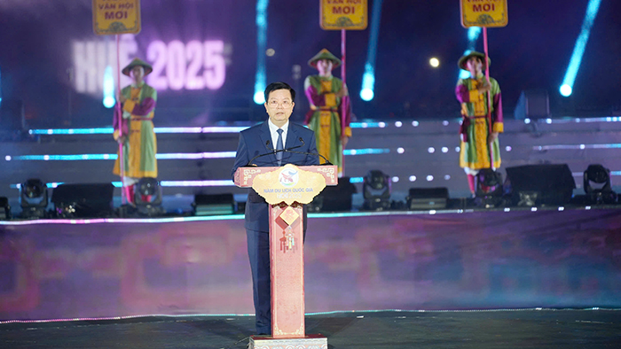 Phát biểu khai mạc, Bộ trưởng Bộ VH-TT&DL Nguyễn Văn Hùng cho biết, Năm du lịch quốc gia 2025 diễn ra với nhiều hoạt động sôi nổi tại TP.Huế và nhiều tỉnh, thành phố trong cả nước, theo hướng “kết hợp sức mạnh, nhân lên lợi thế, khơi nguồn thành công”. Trong đó, hướng tới tổ chức nhiều hoạt động thiết thực, có sức lan tỏa các sự kiện hưởng ứng như tuần lễ văn hóa – du lịch, lễ hội ẩm thực, các hoạt động nghệ thuật “đa dạng về loại hình – đặc sắc về nội dung”, “chuyển hóa các giá trị tài sản văn hóa, công nghiệp văn hóa thành nguồn lực, động lực cho sự phát triển của du lịch”. Với tinh thần mới, khí thế mới, âm hưởng sâu đậm từ truyền thống văn hóa, nền văn hiến hàng ngàn năm của dân tộc, thể hiện sâu sắc ý chí, khát vọng phát triển hùng cường, thịnh vượng của đất nước trong kỷ nguyên mới.