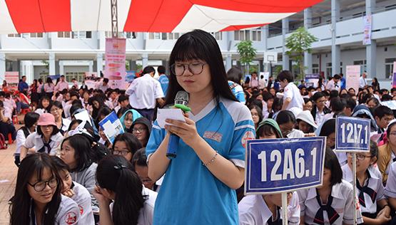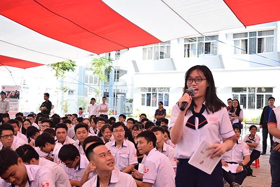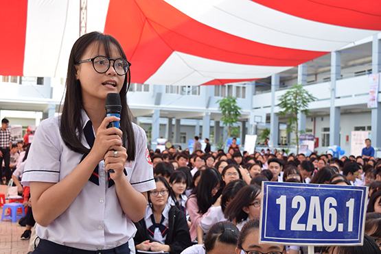 | Đại diện Trường ĐH Văn Lang trả lời câu hỏi của học sinh |
