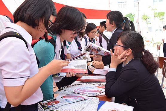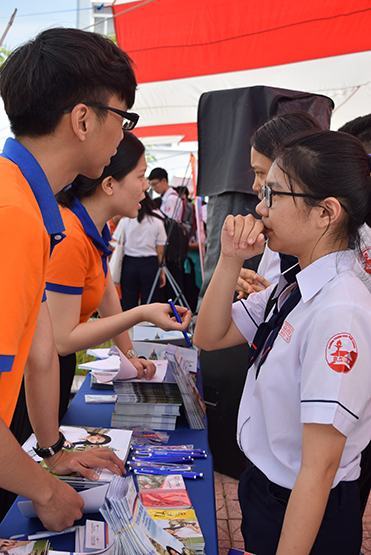 | Đại diện Trường ĐH Hoa Sen giải đáp thông tin về học bổng của trường |