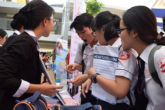 Học sinh quan tâm đến ngành nghề của trường CĐ Nghề Du lịch Sài Gòn