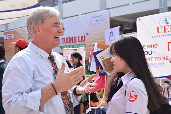 | TS Phạm Tấn Hạ, Phó Hiệu trưởng Trường ĐH KHXH-NV TP.HCM giải đáp thắc mắc của học sinh về ngành ngôn ngữ Anh |