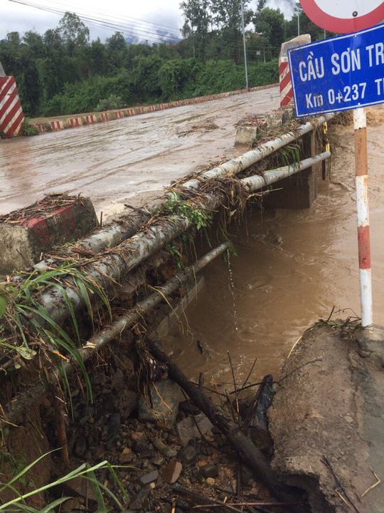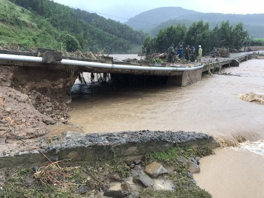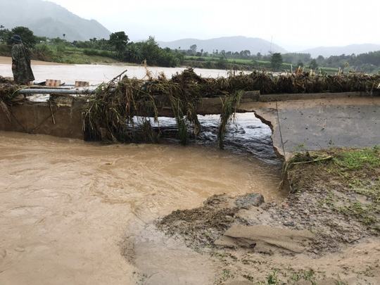 Nước cuốn mất mố cầu. Ảnh: Văn Nhuận