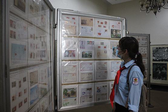 Không gian hiện đang trưng bày bộ sưu tập tem về Chủ tịch Hồ Chí Minh