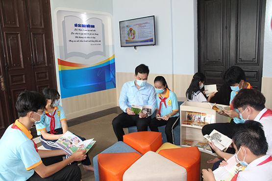 Các em thiếu nhi đọc sách tại Không gian Thiếu nhi làm theo 5 điều Bác Hồ dạy