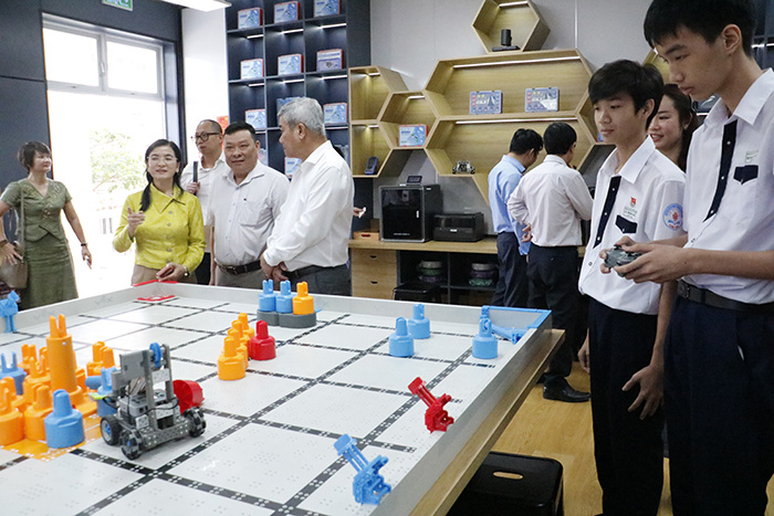 Việc khánh thành và đưa vào sử dụng Phòng học STEM có ý nghĩa vô cùng quan trọng. Đây không chỉ là một không gian học tập hiện đại với trang thiết bị đồng bộ, mà còn là môi trường để thầy và trò cùng trải nghiệm, khám phá, nghiên cứu và sáng tạo. Nhà trường sẽ khai thác hiệu quả những giá trị phòng học STEM vào giảng dạy chính khóa và hoạt động trải nghiệm; tăng cường bồi dưỡng giáo viên; mở rộng các sân chơi khoa học, phát triển các dự án học tập, giúp HS phát triển toàn diện năng lực, phẩm chất, đáp ứng yêu cầu của chương trình GD phổ thông mới và của thời đại chuyển đổi số”.