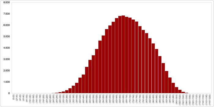 ĐH Quốc gia TP.HCM đánh giá, kết quả thi cho thấy chất lượng đề thi tiếp tục được nâng cao, khả năng phân hóa tốt. Phổ điểm có dạng gần phân bố chuẩn với điểm trung bình và trung vị đều bằng 682 điểm. Khoảng 30% thí sinh đạt dưới 600 điểm, 55% dưới 700 điểm và chỉ khoảng 6% đạt từ 900 điểm trở lên. Điều này thể hiện sự phân tầng rõ rệt giữa các nhóm năng lực.