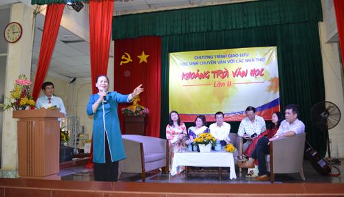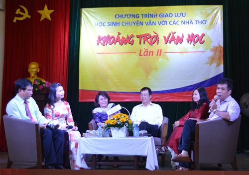 Chương trình giao lưu văn học được Trường THPT chuyên Lê Hồng Phong, TP.HCM tổ chức vào ngày 16-01. Có gần 380 HS của các trường THPT chuyên Trần Đại Nghĩa, chuyên Lê Hồng Phong, THPT Gia Định, THPT Mạc Đĩnh Chi, CLB sáng tác THPT Lê Quý Đôn và Trường Wellspring Saigon. Cô Triệu Thị Huệ – Trưởng bộ môn Ngữ văn Trường THPT chuyên Lê Hồng Phong cho biết, chương trình nhằm tạo cơ hội cho các HS chuyên văn các trường THPT có dịp tiếp xúc với các tác giả – tác phẩm, và giúp các em có thêm điều kiện bổ sung kiến thức phong phú của văn chương. Qua đó còn được học hỏi kinh nghiệm sáng tác; bồi đắp niềm hứng thú say mê để ươm mầm văn học.