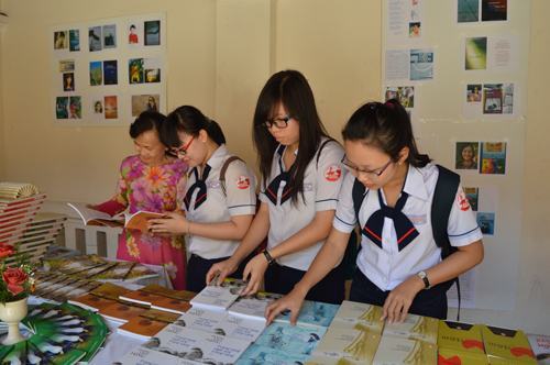 HS Trường THPT Gia Định tham quan khu triển lãm sách trong chương trình giao lưu .
