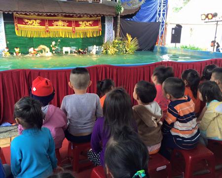 Các cháu Trường Mầm non Phượng Hồng say sưa xem múa rối nước tại Nhà hát tuồng Nguyễn Hiển Dĩnh Đà Nẵng