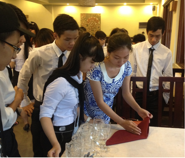 Sinh viên ngành Quản trị khách sạn thực hành nghiệp vụ bàn