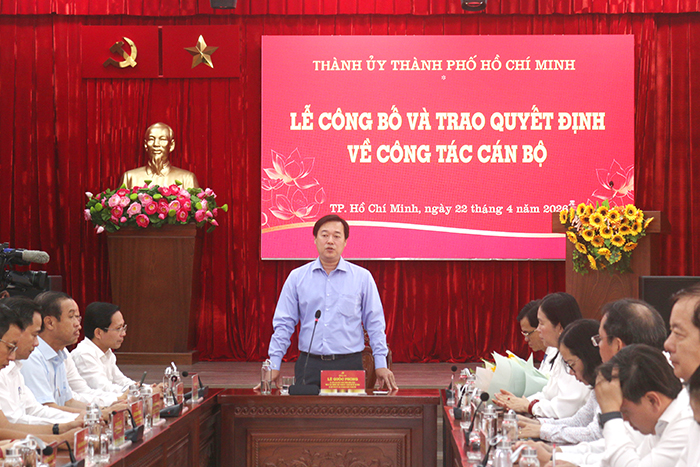 Phát biểu giao nhiệm vụ, ông Lê Quốc Phong – Phó Bí thư Thường trực Thành ủy TP.HCM đánh giá các đồng chí được trao quyết định cán bộ lần này đều bảo đảm tiêu chuẩn, điều kiện theo yêu cầu đề ra.