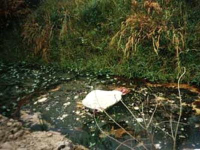 | Thi thể cháu Hà bị tên sát nhân vứt dưới mương nước. |