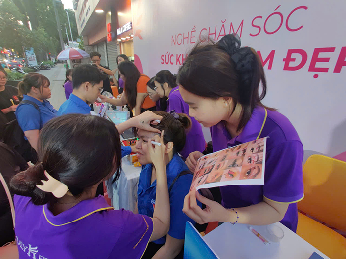 Trong chương trình, các bạn đoàn viên, thanh niên đã được tìm hiểu tổng quan về nghề chăm sóc sức khỏe và làm đẹp cùng nghệ thuật hóa trang trở thành những nhân vật khác nhau để biểu diễn nghệ thuật.