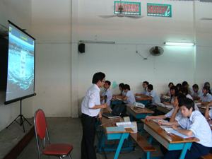 Khi dạy bài 13 môn sử (Nước Mỹ giữa hai cuộc chiến tranh thế giới) trong chương trình lớp 12, thầy Nguyễn Vũ Mỹ – giáo viên Trung tâm GDTX Gia Định – muốn cho HS nắm được những kiến thức cơ bản về sự vươn lên mạnh mẽ của nước Mỹ sau Chiến tranh thế giới thứ nhất, đặc biệt là thời kỳ bùng phát của kinh tế trong thập niên 20 thế kỷ XX. Bên cạnh đó HS cũng thấy rõ tác động của cuộc khủng hoảng kinh tế (1929-1933) đối với quốc gia này và đặc biệt là chính sách của Tổng thống Ru-dơ-ven trong việc đưa nước Mỹ thoát khỏi khủng hoảng nhằm bước vào một thời kỳ phát triển mới. Để làm trọn vẹn được điều này, giáo viên đã kết hợp phương pháp diễn giảng với trình bày số liệu qua màn hình trình chiếu trên bảng. Từ sự tiếp thu bằng thính giác và những hình ảnh trực quan sinh động, các em có thêm những tư liệu chính xác và đầy đủ như trong sách giáo khoa đã trình bày. Không dừng lại ở đó, bằng sự gợi ý từ bài học trước, giáo viên đã hướng các em đi vào công việc cụ thể và có phần khó khăn hơn là phân tích toàn bộ tư liệu lịch sử để thấy rõ hơn bản chất của vấn đề. Đây cũng là cách dạy của cô Nguyễn Kim Dung – giáo viên Trung tâm GDTX quận 3 khi lên lớp bài Cách mạng công nghiệp hóa các nước ở châu Âu. Đứng trước các tư liệu lịch sử, cô đã hướng dẫn các em đi sâu vào vấn đề thông qua cách đặt câu hỏi và sau đó tìm ý để trả lời như: Những tư liệu đó phản ảnh điều gì của lịch sử? Vì sao giai đoạn này lại có những sự kiện lịch sử đó?…