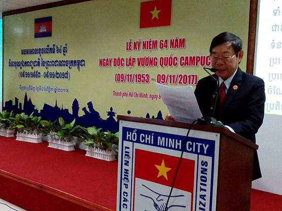 Sáng 8-11, Liên hiệp các tổ chức hữu nghị, Hội hữu nghị Việt Nam-Campuchia TP.HCM đã tổ chức Lễ kỷ niệm 64 năm ngày độc lập Vương quốc Campuchia (9-11-1953 – 9-11-2017.