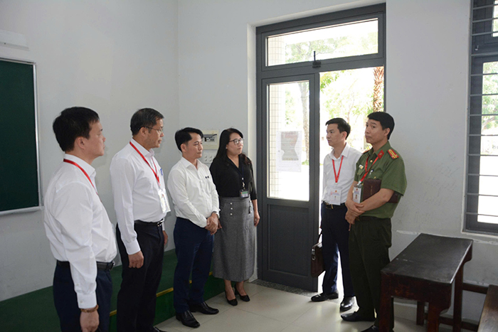 Tại buổi kiểm tra, Đoàn kiểm tra của Bộ GD-ĐT ghi nhận tinh thần chủ động, chu đáo của địa phương nhưng cũng lưu ý cần tiếp tục rà soát kỹ các điều kiện bảo đảm an toàn như hệ thống phòng cháy chữa cháy, niêm phong camera trong các phòng học sử dụng làm phòng thi, tuân thủ đúng quy định và thống nhất tại tất cả các điểm thi.
