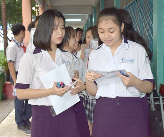 Tại Hội đồng thi Trường THPT Trưng Vương, TS Cẩm Vy – học Trường THCS Trần Văn Ơn (Q.1) – chia sẻ: “Đề thi vừa sức, khá nhiều kiến thức cơ bản. Kiến thức nâng cao không nhiều, nhưng có nhiều từ vựng mới. Với đề thi này, em làm đạt trên 70% điểm”.