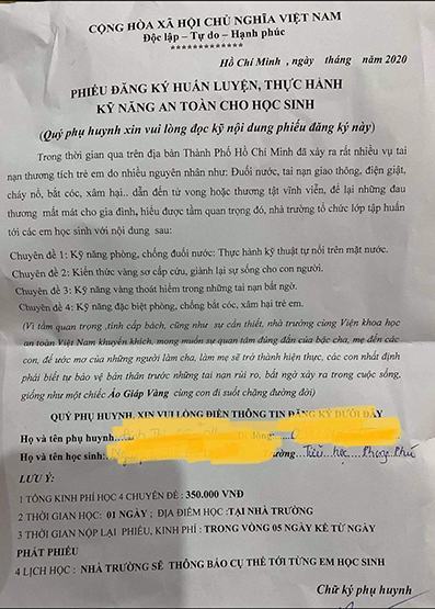 Theo công văn ký kết với Sở GD-ĐT TP.HCM, thay vì có trách nhiệm tập huấn miễn phí cho học sinh tại TP.HCM các kỹ năng an toàn, Viện khoa học an toàn Việt Nam (tên đầy đủ là Công ty cổ phần Viện khoa học an toàn Việt Nam) đã “lách văn bản”, thu số tiền 350 ngàn đồng/học sinh/buổi tập huấn.