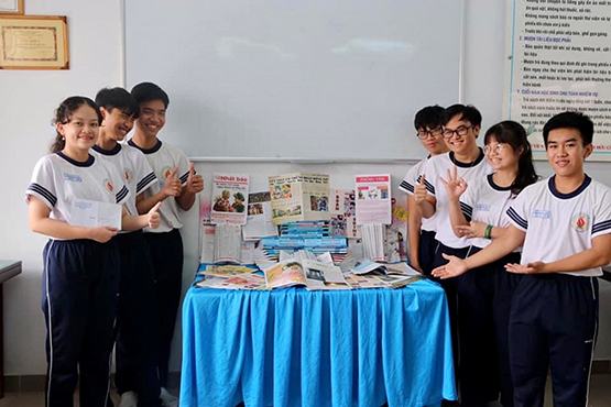 Các sản phẩm báo chí do học sinh Trường THPT Nguyễn Hữu Cầu (huyện Hóc Môn) thiết kế trong một dự án học tập trải nghiệm ở môn ngữ văn