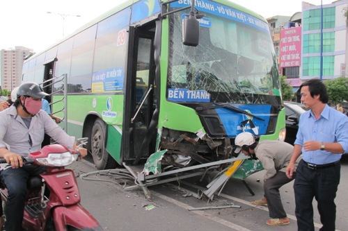 TPHCM: Xe buýt chạy tuyến Bến Thành – Bến xe Miền Tây tông nát dải phân cách, gần trăm người thoát chết.