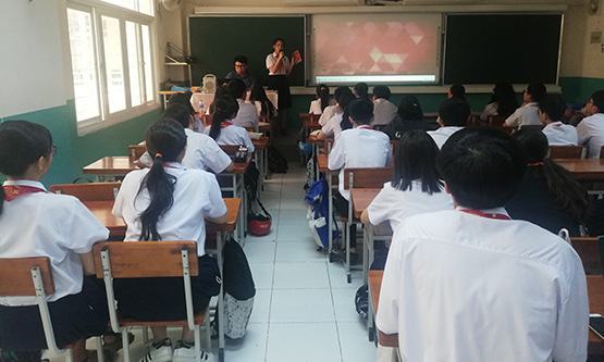 Một học sinh đang giới thiệu bộ phim do nhóm thực hiện