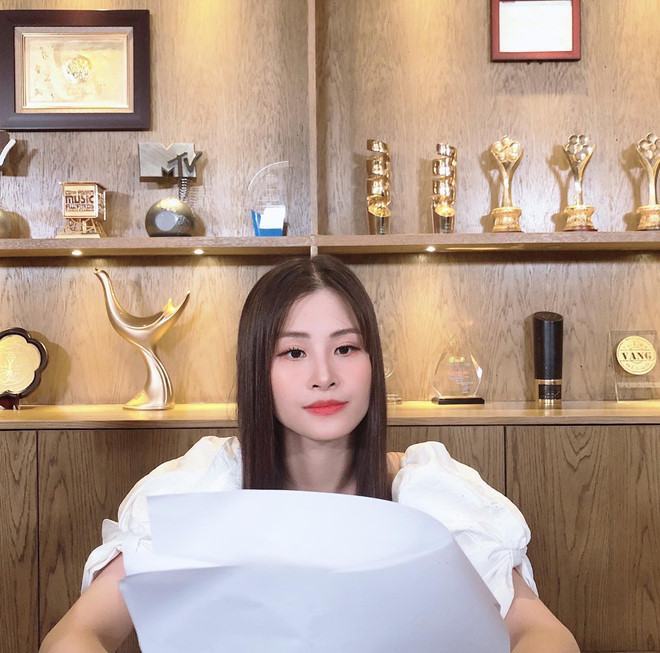 Đông Nhi trong buổi giao lưu trực tuyến ngày 28.3. Ảnh: Vân Anh
