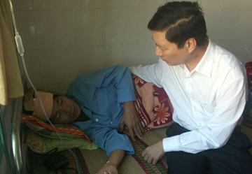 Sau khi viếng đám tang Kiểm lâm viên Lê Văn Phượng, PV đã cùng ông Đặng Viết Thuần – Phó Chủ tịch UBND tỉnh Thái Nguyên đến Bệnh viện đa khoa huyện Đại Từ thăm Kiểm lâm viên Phạm Xuân Trường (Hạt Kiểm lâm Ký Phú, huyện Đại Từ) đang nằm điều trị tại đây.