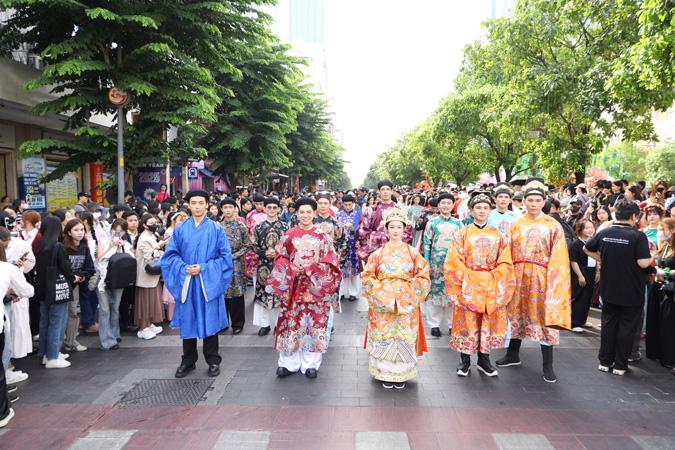 | Lễ hội Áo dài TP.HCM năm 2026 với chủ đề “Sợi tơ vàng son – Dệt nên khát vọng” diễn ra từ ngày 1 đến 31-3 với nhiều hoạt động nổi bật. Điểm nhấn của lễ hội năm nay không chỉ nằm ở quy mô mà ở thông điệp “Áo dài không chỉ là trang phục đó là bản sắc. Áo dài không chỉ là ký ức đó là niềm tự hào. Và áo dài không chỉ thuộc về quá khứ đó là hình ảnh của một Việt Nam hiện đại, tự tin và hội nhập”. |