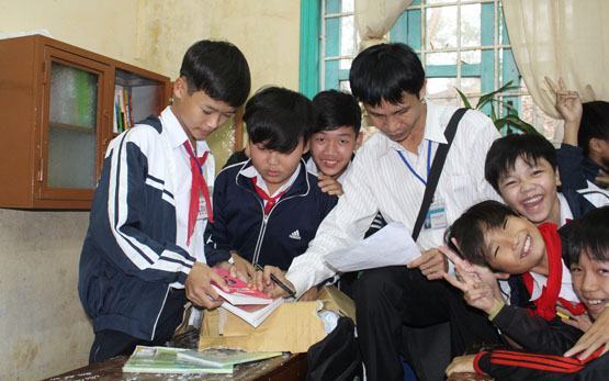 Những đôi mắt rạng ngời hướng về phía cô giáo, thi thoảng những tiếng trầm trồ cất lên khi nghe tên một cuốn sách hay. Dường như với những cô cậu học trò vùng đất nghèo Triệu Sơn (Triệu Phong, Quảng Trị), niềm đam mê đọc sách vẫn âm ỉ cháy trong muôn vàn thiếu thốn…