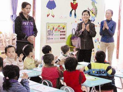 | Các cô giáo làng Đại Tự tại lớp học mầm non xã Thanh Khương . Ảnh: Nguyễn Trường |