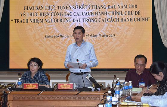 Chiều 2-10, UBND TP.HCM tổ chức Hội nghị giao ban trực tuyến Sơ kết 9 tháng đầu năm thực hiện công tác cải cách hành chính (CCHC). Ông Trần Vĩnh Tuyến – Phó Chủ tịch UBND TP chủ trì hội nghị.