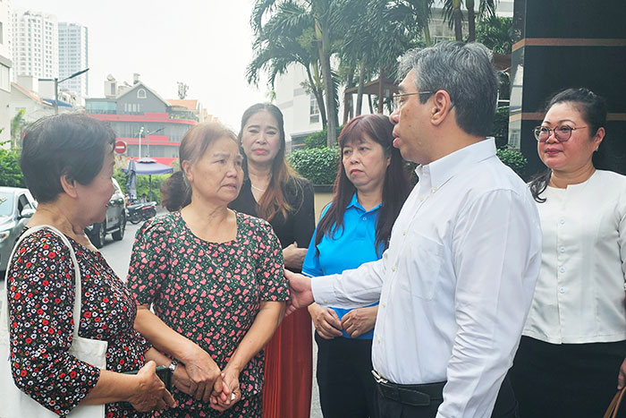 Tham gia cùng đoàn có bà Đinh Thị Thanh Thủy, Phó Trưởng ban Tuyên giáo và Dân vận Thành ủy TP.HCM, cùng đại diện lãnh đạo Hội Liên hiệp Phụ nữ TP.HCM và chính quyền địa phương phường Tân Hưng.