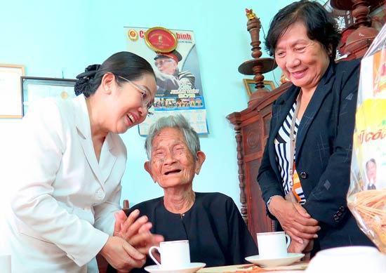 Nhân kỷ niệm 75 năm Ngày truyền thống Người cao tuổi (6-6-1941 – 6-6-2016) và Tháng hành động vì người cao tuổi – năm 2016, ngày 1-6, đồng chí Võ Thị Dung, Phó Bí thư Thành ủy TPHCM dẫn đầu đoàn đại biểu TP đi thăm, chúc thọ 2 cụ Trương Thị Chép và Phạm Văn Nhờ (cùng 90 tuổi, cùng ngụ quận 12, TPHCM).
