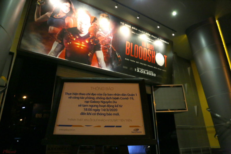 Bảng thông báo được đặt tại rạp Galaxy Nguyễn Du, quận 1, TPHCM.