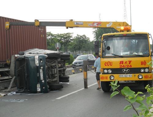 Nhận được tin báo, lực lượng CSGT An Sương và dân phòng địa phương có mặt tại hiện trường điều tiết giao thông. Một xe cẩu được điều đến để cứu hộ chiếc xe gặp nạn.