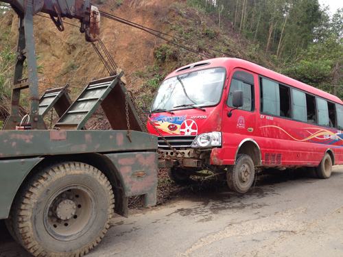 Xe cứu hộ kéo xe khách bị nạn ra khỏi hiện trường