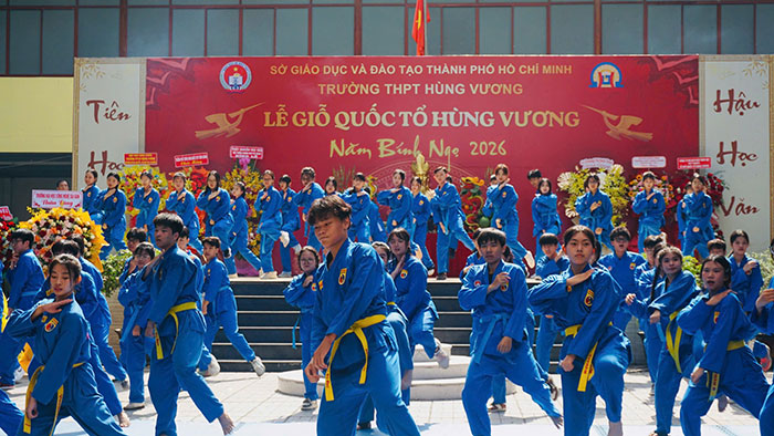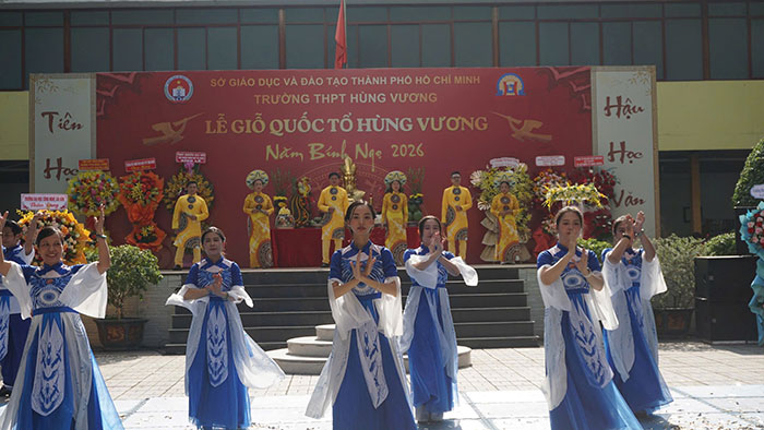 Sáng 24-4, Trường THPT Hùng Vương, TP.HCM đã tổ chức Lễ Giỗ tổ Hùng Vương với nhiều hoạt động ý nghĩa, trang nghiêm. Đây không chỉ là dịp để thầy trò nhà trường hướng về cội nguồn dân tộc mà còn được xem là hoạt động giáo dục truyền thống của một ngôi trường vinh dự được mang tên Hùng Vương.